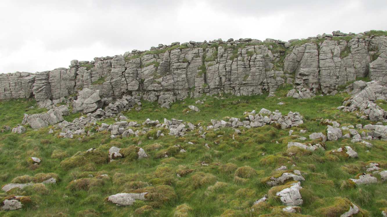 Encircling a slightly sloping area of ground that stretches out beneath a long line of limestone crags is this notable walled enclosure running almost the full length of the rocky ridge. Measuring 40 yards (36m) in length by 10 yards (9m) across at its greatest width, this elongated rectangular enclosure has all attributes of being Iron Age in origin, much like many others in this area. However, in comparison with the others close by, this is a pretty small construction and—if used for human habitation, as is likely—would have housed only two or three families.